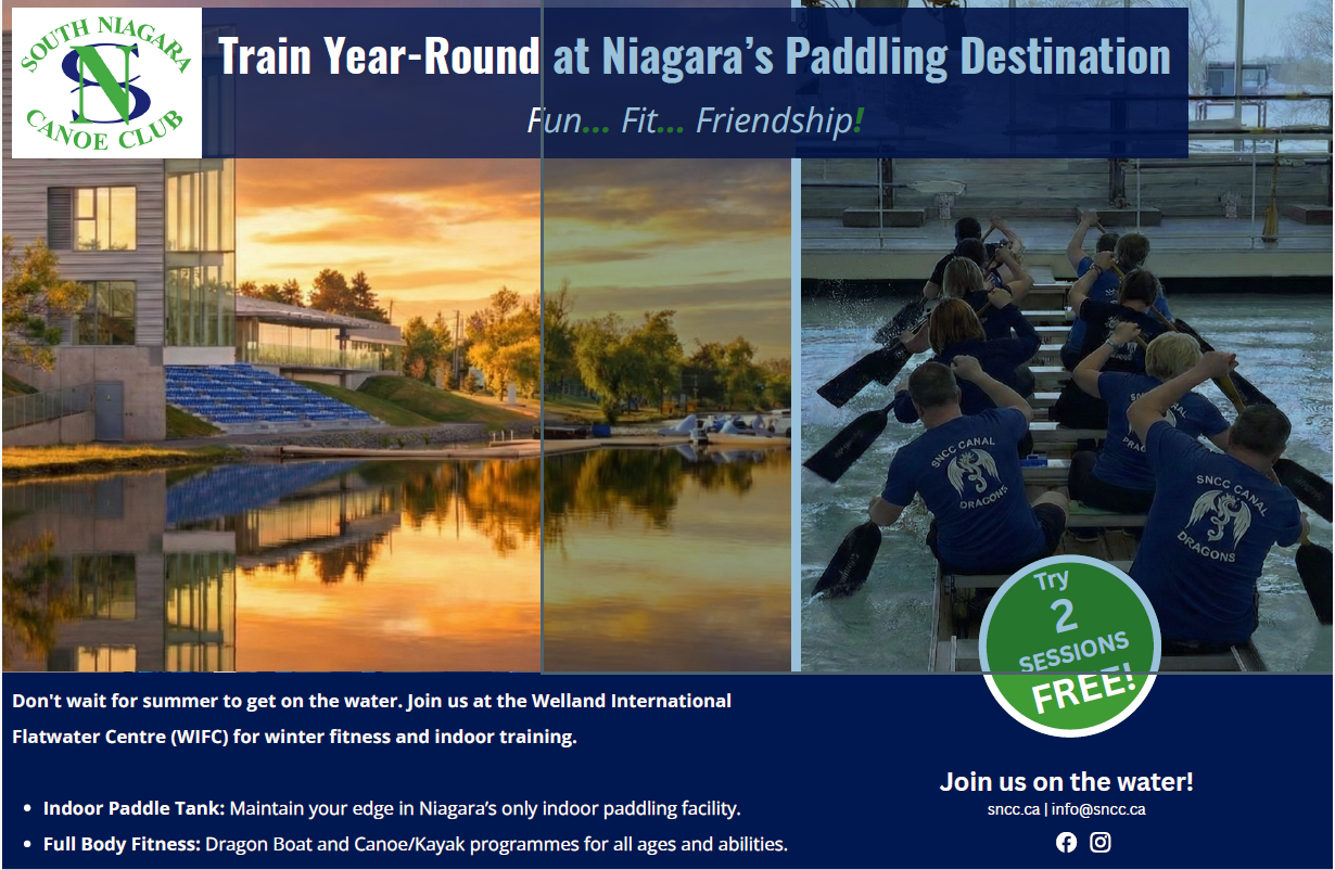 Join Canal Dragons for Indoor Dragon Boat Winter Training at the Welland International Flatwater Center click here.